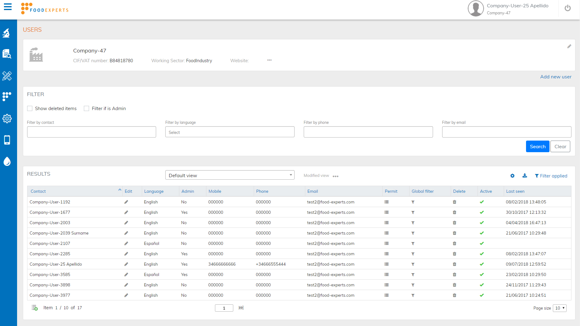 You can give access to several users within your company, should you want to. To do so go to My Profile > User access > New access. Give the new user name and password to your colleague. This way your colleagues can also be informed on analysis results.