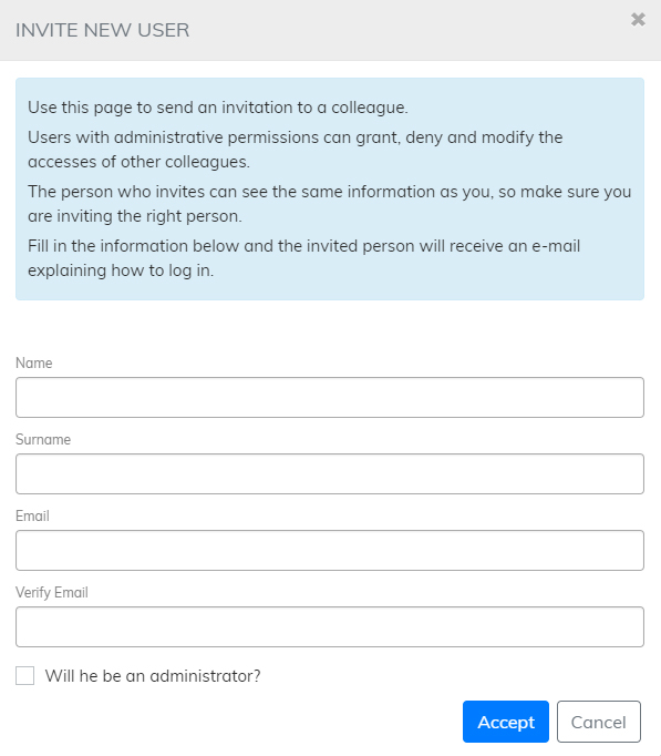 The new user will receive an email with an invitation email where there will be a link that will take you to the beginning of the registration.